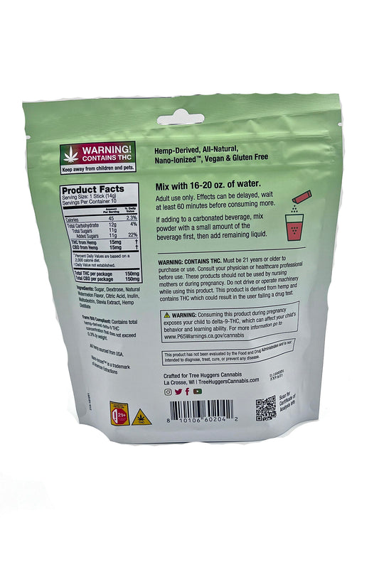 Cannabis Beverage Powder Pouch – Fresh Watermelon 15mg (10 sticks per pouch)
